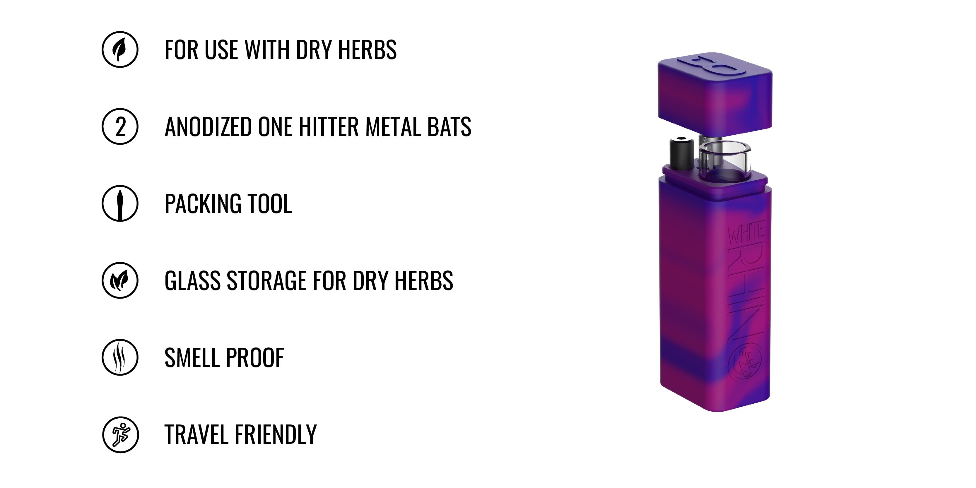 • Complete Smoking Solution: Each Silicone Dugout comes equipped with two anodized metal one-hitter bats, a handy packing tool, and a built-in container specifically designed to hold dry herbs, ensuring that users have everything they need in one portable package.