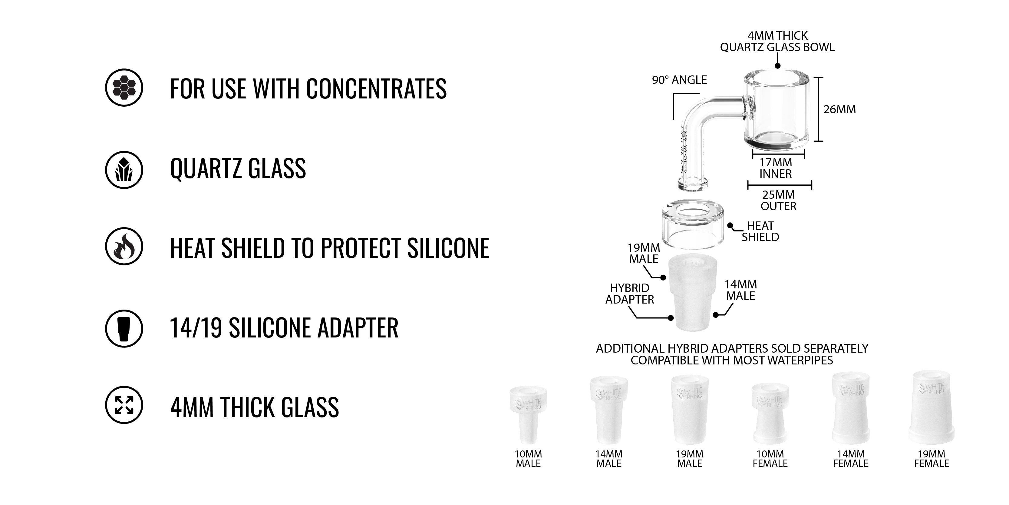 The White Rhino Hybrid Banger is a must-have for smoke shops looking to offer customers versatility and convenience in one product. This universal banger comes equipped with a removable 14/19MM silicone adapter, allowing it to fit multiple setups right out of the box. For even greater flexibility, customers can purchase additional adapters separately, transforming this banger to fit six different joint sizes: