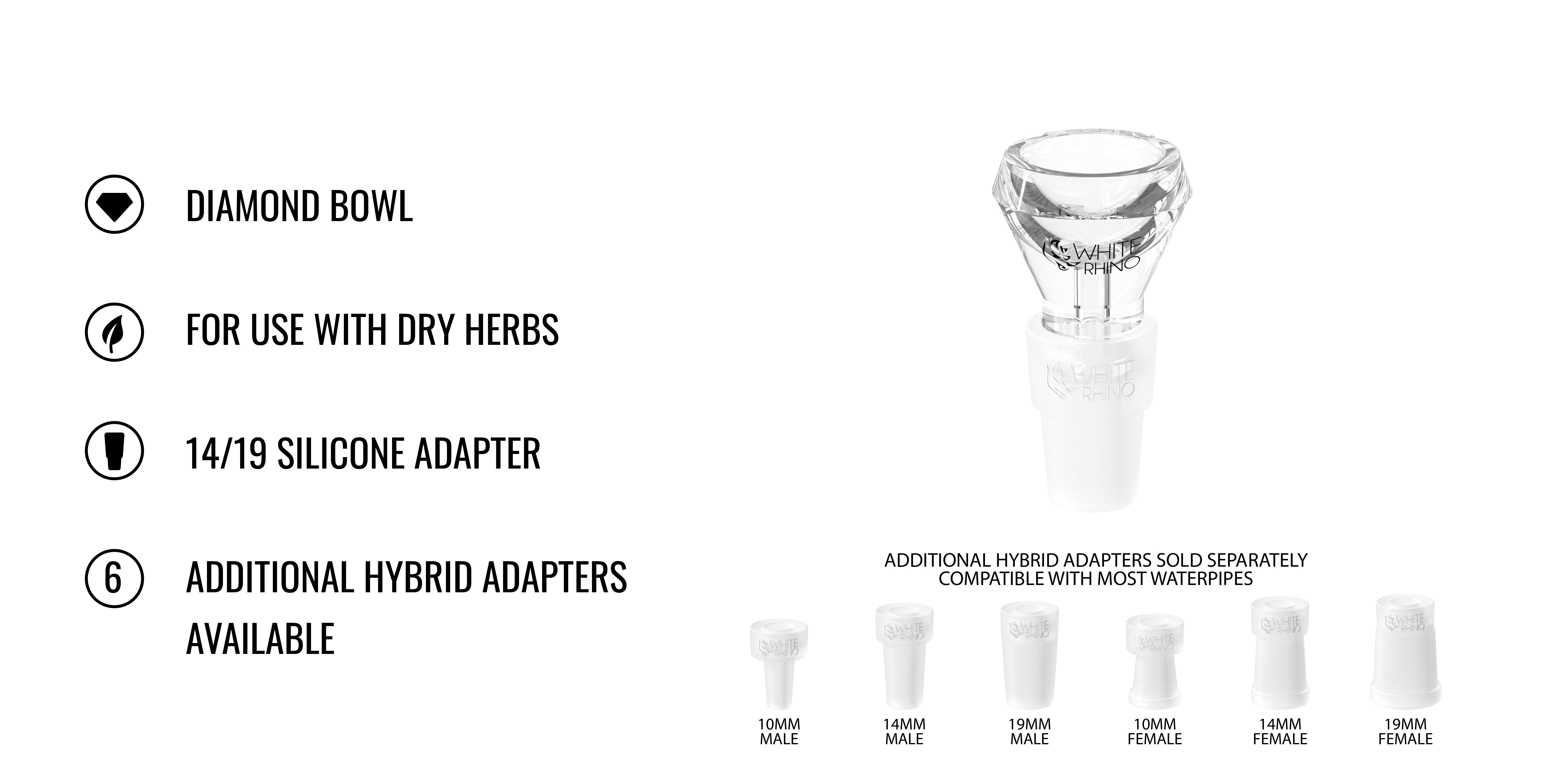 White Rhino Hybrid Diamond Glass Smoking Bowl