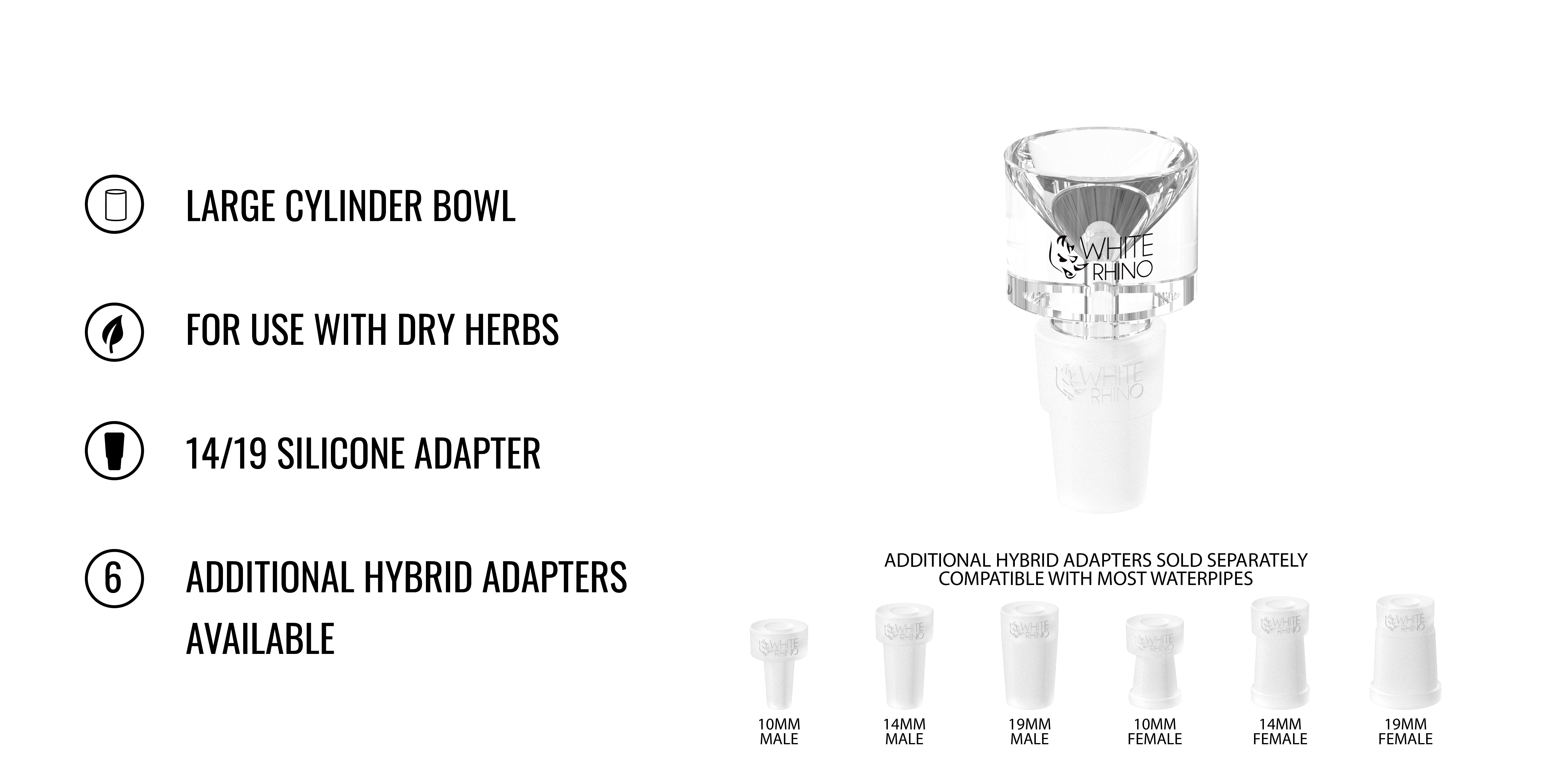 The Hybrid Large Cylinder Bowl is made for the heavy hitters. With a sturdy 14/19 male joint and a removable silicone adapter, this piece is built to handle bigger packs, smoother hits, and total compatibility with different setups. It’s a solid, no-fuss choice that stands tall on any shelf—and performs even better in your customer’s hands.