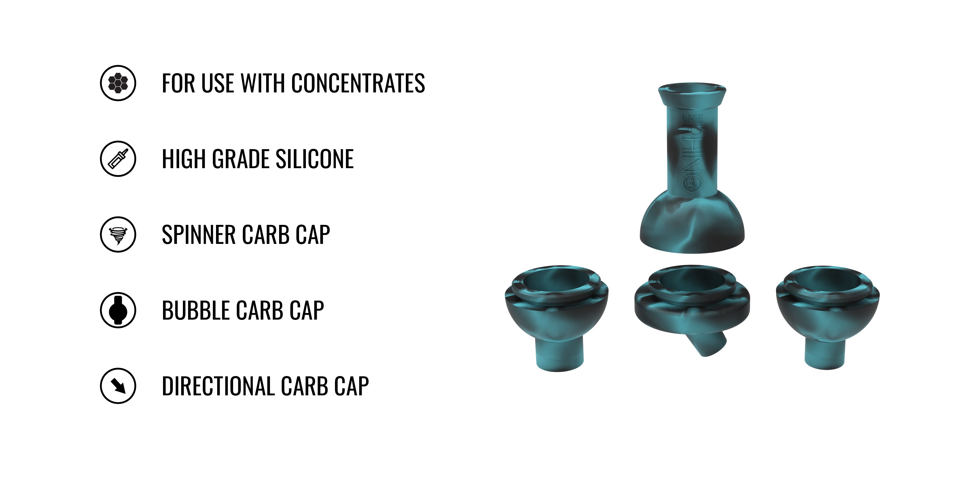 - Three-in-One Design: Carb-It transitions seamlessly between a Bubble Cap, Directional Carb Cap, and Spinner Carb Cap, providing you with the flexibility to adjust your airflow and vaporization technique based on your current needs.