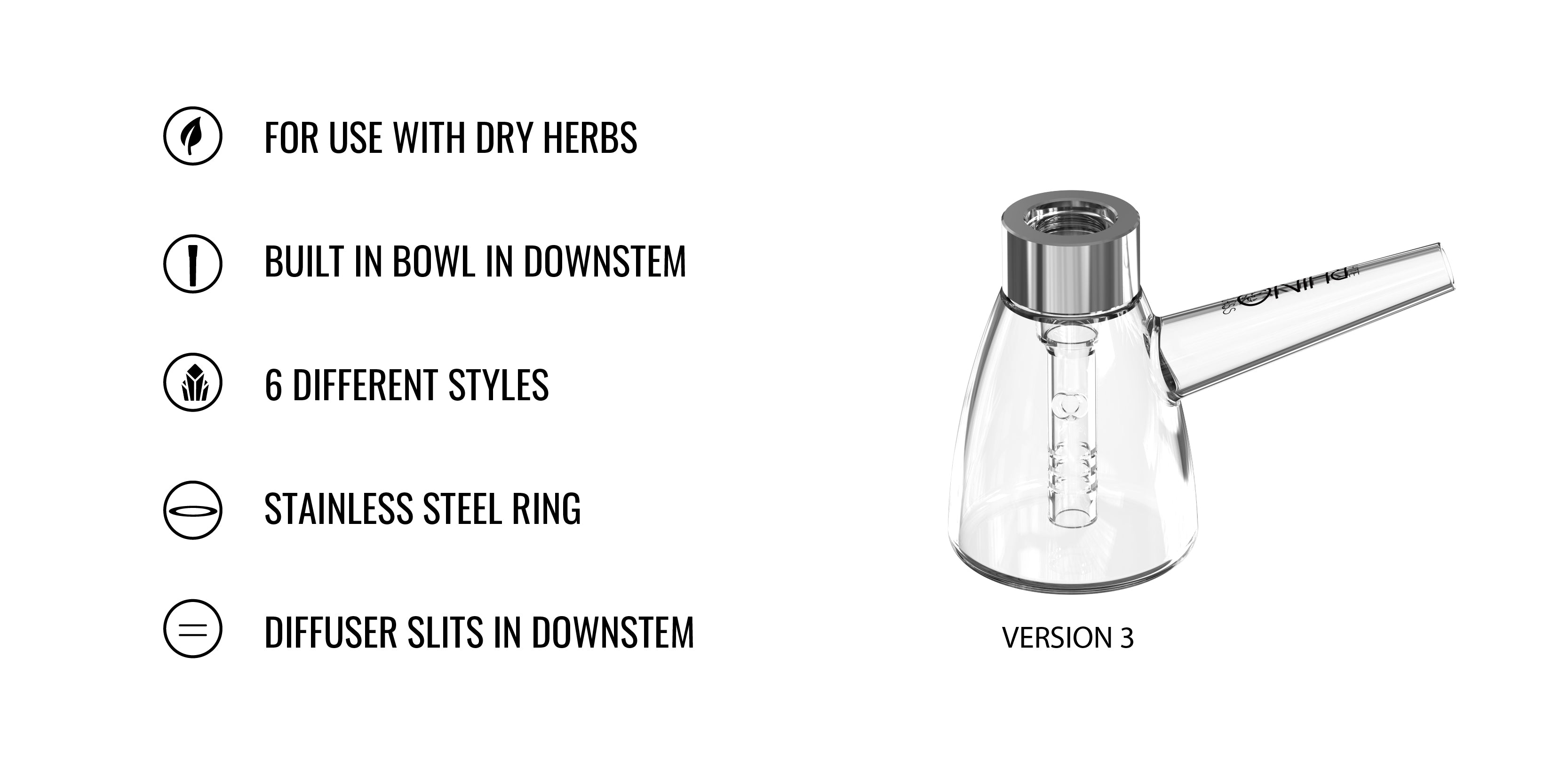 The White Rhino EZ Clean Bubbler Version 3 takes glass bubbler design to the next level with effortless cleaning and superior filtration. Unlike traditional bubbler pipes, this model fully disassembles, making maintenance simple and hassle-free. The stainless steel ring easily comes off, and the removable downstem with a built-in dry herb bowl allows for a deep clean every time, ensuring a fresh smoking experience.