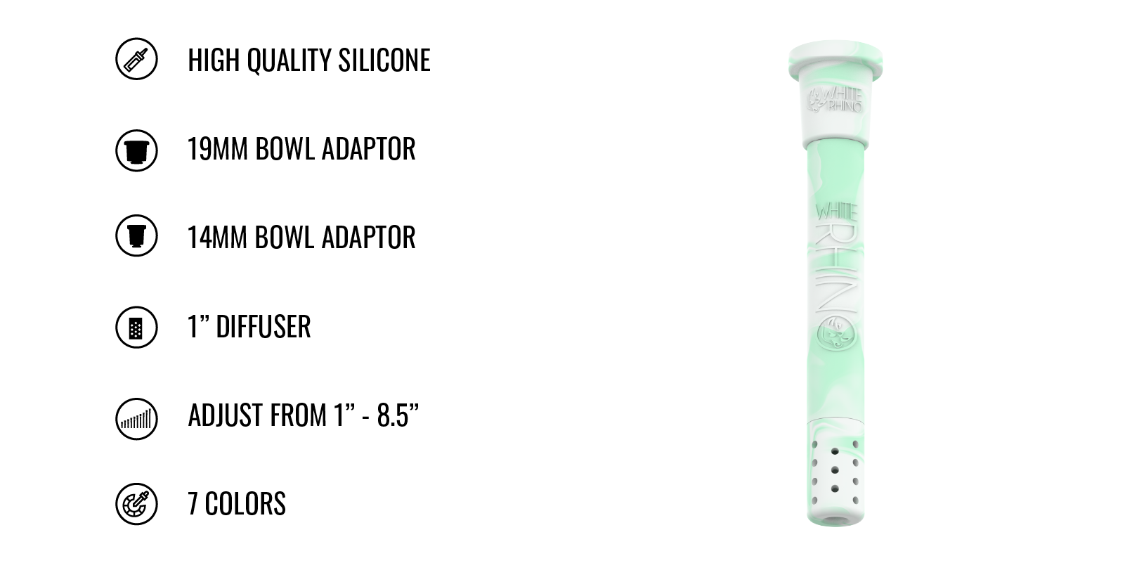 White Rhino Adjustable Silicone Downstem – Glow in the Dark, 35 Count Display, Available in 7 Colors
